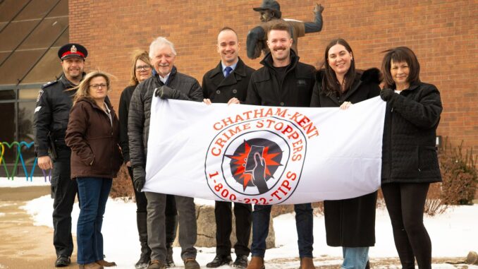 The local Chatham-Kent group kicked off National Crime Stoppers Awareness Month with a flag-raising ceremony at the Civic Centre on Jan. 2.