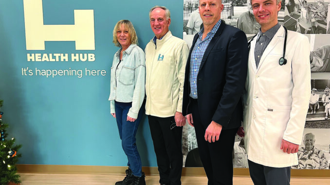 A new cardiology clinic called “Capture Health” is coming to the Blenheim Health Hub this year, expanding health-care services already offered at the centre. Celebrating the accomplishment are foundation board member Cathy Smith, chair Ed O'Brien, Windsor Heart Institute/Capture Health CEO Rob Butler and Dr. Andrew Lanz-O'Brien, physician and board member. Pam Wright, Local Journalism Initiative Reporter