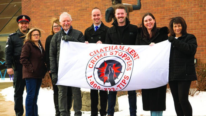 January is Crime Stoppers Awareness Month and this year’s Canada-wide theme is “Safe Streets, Strong Communities – Together We Can Stop Crime.” The C-K chapter held a flag raising at the Chatham-Kent Civic Centre Jan. 2 to mark the occasion.