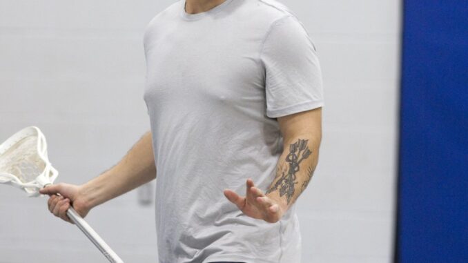 Stonefish and Glover-Noah demonstrated the basic skills of the sport, showing the students how to use the stick’s webbing to carry, pass, catch and shoot the ball from a standing position and while running.